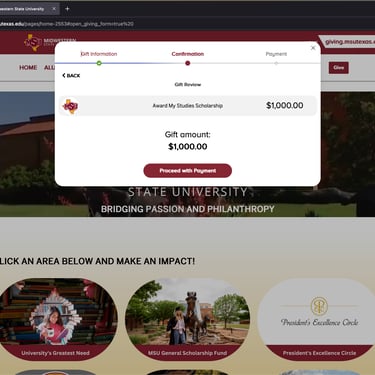 Donations to Award My Studies are made directly to Midwestern State University and are used exclusively for public purposes. As a result, your contributions are tax-deductible under section 17 (c)(1) of the Internal Revenue Code. This means that not only will you be making a difference in the lives of students, but you will also receive tax benefits for your charitable giving.