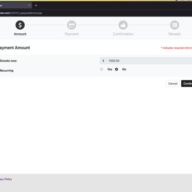 The following screen will be your confirmation screen, providing a summary of your donation.