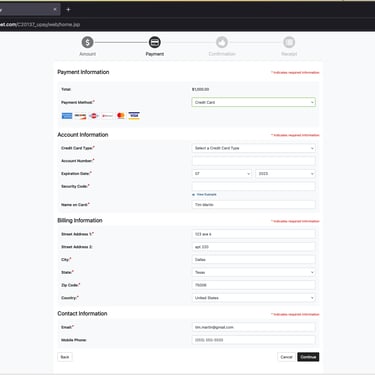 On this screen, you can use your credit or debit card to make a donation. Enter the required information and press "Continue."